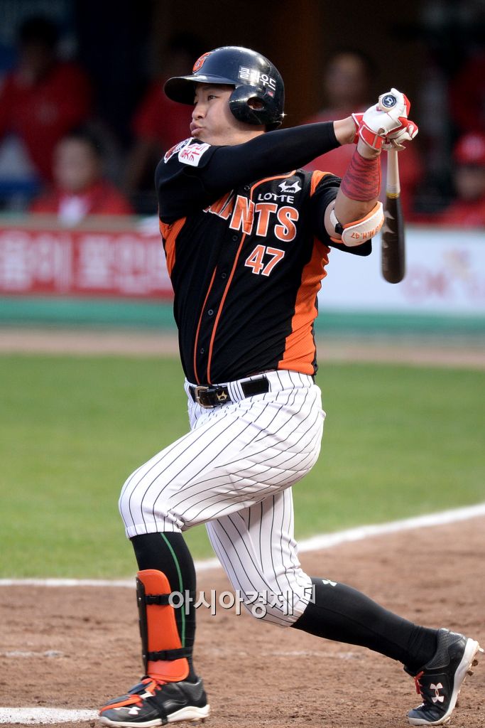 [인천=아시아경제 김현민 기자] 2015 KBO리그 롯데 자이언츠와 SK 와이번스의 경기가 26일 문학야구장에서 열렸다. 3회초 2사 1,3루에서 롯데 강민호가 선취 2타점 2루타를 치고 더그아웃을 향해 손짓하고 있다. 김현민 기자 kimhyun81@asiae.co.kr<ⓒ세계를 보는 창 경제를 보는 눈, 아시아경제(www.asiae.co.kr) 무단전재 배포금지>