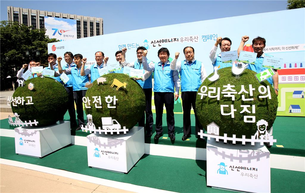 [아시아경제 오현길 기자] 정부와 축산농가, 가공·유통업계가 신선하고 안전한 축산 환경 조성을 위해 캠페인을 진행했다.27일 축산자조금연합은 광화문 시민열린마당에서 '신선하고 안전한 우리축산의 다짐행사'를 열고 가축분뇨를 퇴비화해 만든 꽃 화분을 소비자에게 나눠주는 신선화분 나누기 행사를 진행했다.아울러 축산자조금연합은 이번 대회를 시작으로 축산업 경쟁력 강화와 신선한 축산식품의 생산과 가공·유통 환경을 조성하기 위해 공청회를 열어 구체적인 실천 공약과 세부 계획 등을 마련하기로 했다.이병규 축산자조금연합 위원장(한돈 자조금 위원장)은 "신선하고 안전한 축산식품을 생산·공급하는데 축산업계 전체가 함께 할 것"이라며 "앞으로 소비자 친화적이고 미래 경쟁력을 높이기 위한 농가 차원의 다각적 노력을 강구할 것"이라고 밝혔다. 이천일 농림축산식품부 국장은 "국내 축산업 생산액이 16조원에 달하는 식량산업의 핵심인 만큼 정부도 가축질병발생을 원천적으로 차단할 수 있는 관리감독 체계를 강화하겠다"며 "생산에서 가공, 유통에 이르기까지 철저한 관리체계를 갖추겠다"고 말했다.한편 축산자조금연합은 작년 8월 축산인식개선 캠페인을 시작했으며, 앞으로는 소비자단체와 연계해 소비자 교육을 실시하고 우수 축산 시설을 알리기 위한 자료 구축, 대한영양사협회와 함께 건강한 축산 요리법 소개 등 다양한 활동을 전개할 계획이다.축산자조금연합은 27일 광화문 시민열린마당에서 축산 가축분뇨를 퇴비화해 만든 화분을 시민들에게 나누는 행사를 진행했다.