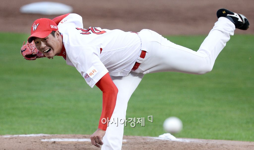 [인천=아시아경제 김현민 기자] 2015 KBO리그 롯데 자이언츠와 SK 와이번스의 경기가 27일 문학야구장에서 열렸다. SK 선발투수 김광현이 롯데 타선을 상대로 역투하고 있다. 김현민 기자 kimhyun81@asiae.co.kr<ⓒ세계를 보는 창 경제를 보는 눈, 아시아경제(www.asiae.co.kr) 무단전재 배포금지>