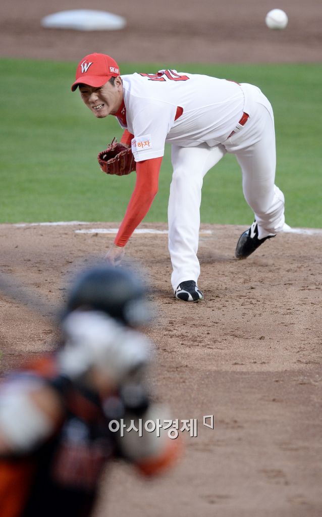 [인천=아시아경제 김현민 기자] 2015 KBO리그 롯데 자이언츠와 SK 와이번스의 경기가 27일 문학야구장에서 열렸다. SK 선발투수 김광현이 롯데 타선을 상대로 역투하고 있다. 김현민 기자 kimhyun81@asiae.co.kr<ⓒ세계를 보는 창 경제를 보는 눈, 아시아경제(www.asiae.co.kr) 무단전재 배포금지>