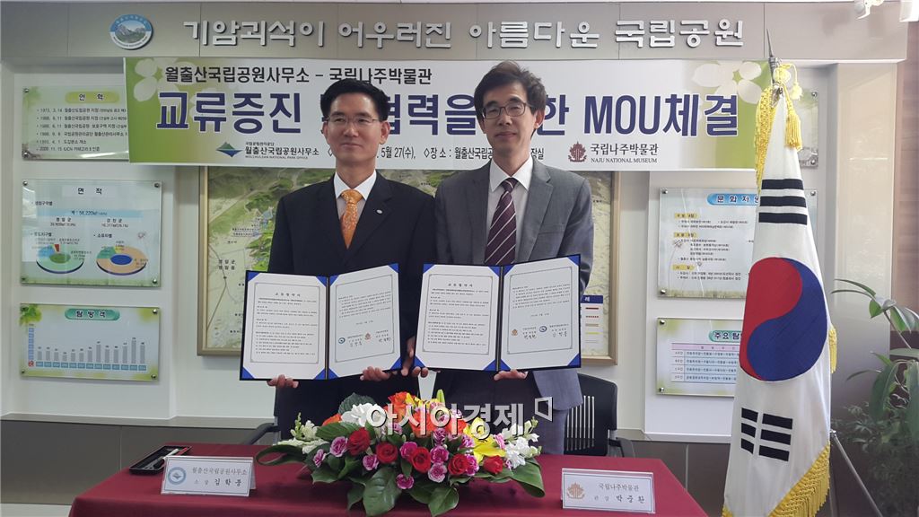 27일 국립나주박물관과 월출산국립공원사무소(소장 김학붕)는 자연생태 및 역사문화 공동 체험 프로그램 활성화 등 다양한 활동을 위해 업무협약을 체결했다. 사진제공=국립나주박물관
