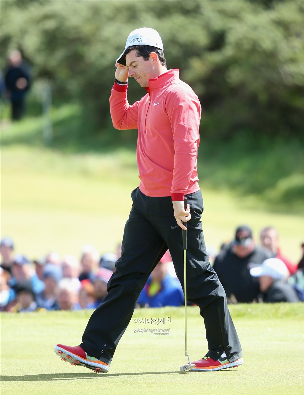 로리 매킬로이가 아이리시오픈 첫날 마지막 9번홀에서 실망스러운 표정을 짓고 있다. 뉴캐슬(북아일랜드)=Getty images/멀티비츠