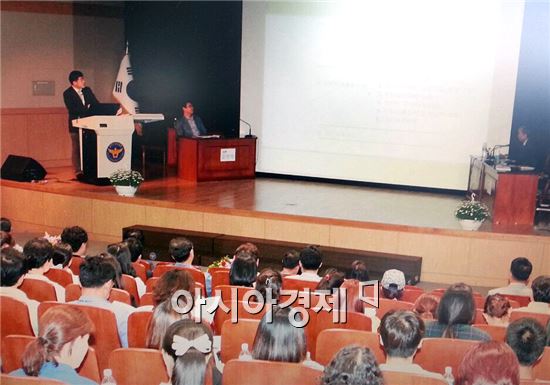 [아시아경제 노해섭 ]호남대학교 경찰학과(학과장 이경희) 김정규 교수는 5월 26일 광주광역시 광산구 광주지방경찰청(청장 최종헌) 빛고을 홀에서 개최된 광주지방경찰청 외사세미나에서 제1주제 논문을 발표했다.김정규 교수는 ‘외국인 근로자의 경찰활동에 대한 평가인식이 범죄의 두려움에 미치는 영향’을 논제로 외국인 근로자의 경찰에 대한 평가수준이 범죄의 두려움에 미치는 영향을 실증적으로 분석하고 이를 근거로 경찰 외사정책의 효율적 방향성을 제시했다.광주지방경찰청 외사협력자문위원회(위원장 정환채)가 ‘다문화 사회의 현재와 미래’를 주제로 개최한 이번 세미나에서는 광주지방경찰청 최종헌 청장과 광주지역 외사요원들을 비롯해 외국인도움센터, 다문화가족지원센터, 유학기관 관계자가 참석해 다문화 사회의 건전한 정착을 위한 방안들을 토의했다.노해섭 기자 nogary@<ⓒ세계를 보는 창 경제를 보는 눈, 아시아경제(www.asiae.co.kr) 무단전재 배포금지>