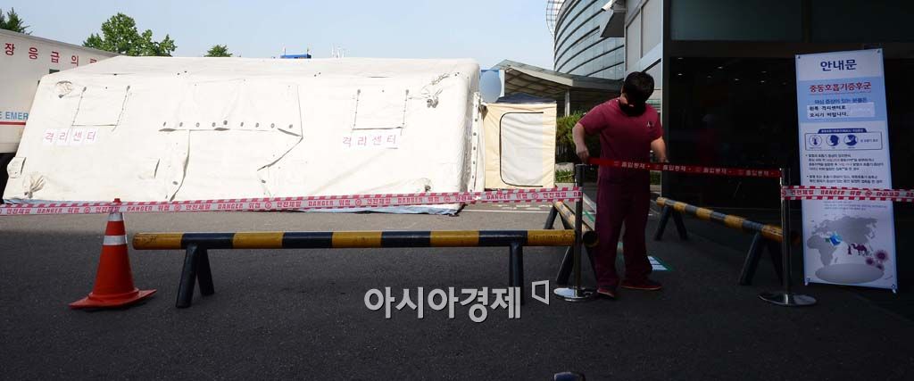 [아시아경제 백소아 기자] 중동호흡기증후군(메르스) 확진환자가 3명 추가돼 18명이 된 1일 서울 종로구 한 대형병원에 메르스 감염자 격리센터가 설치되어 있다.백소아 기자 sharp2046@asiae.co.kr<ⓒ세계를 보는 창 경제를 보는 눈, 아시아경제(www.asiae.co.kr) 무단전재 배포금지>