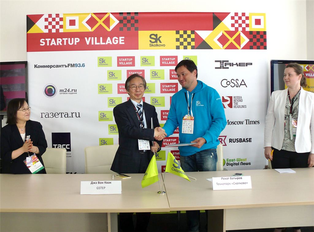 곽재원 경기과학기술진흥원장이 2일(현지시각) 러시아 모스크바에 위치한 '스콜코보테크노파크 이노베이션센터'를 방문, 업무협약을 체결한 뒤 악수하고 있다.
