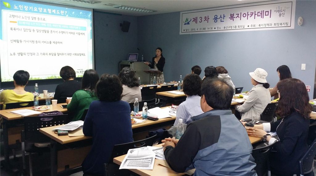 [아시아경제 박종일 기자] 용산구(구청장 성장현)가 최근 복잡·다양해지는 복지 욕구의 대응과 취약가구의 적극적인 발굴을 위해 민·관 복지 인력을 대상으로 복지제도 전반에 대한 교육과정인 ‘용산 복지아카데미’ 운영을 추진하고 있다. 과거 공무원 중심의 교육에서 탈피, 복지통반장·복지위원·일반주민 등 복지 마을활동가를 육성하는 것이 이번 교육의 기본 방향이다. 이를 통해 최종적으로는 공공기관과 주민이 합심, 복지 사각지대를 없애는 것을 최종 목표로 하고 있다. 교육 대상은 구·동주민센터 복지 담당, 복지통반장, 복지위원, 통합사례관리사, 복지상담사, 기타 인력(동복지협의체위원, 복지관 활동가) 및 일반주민이다.