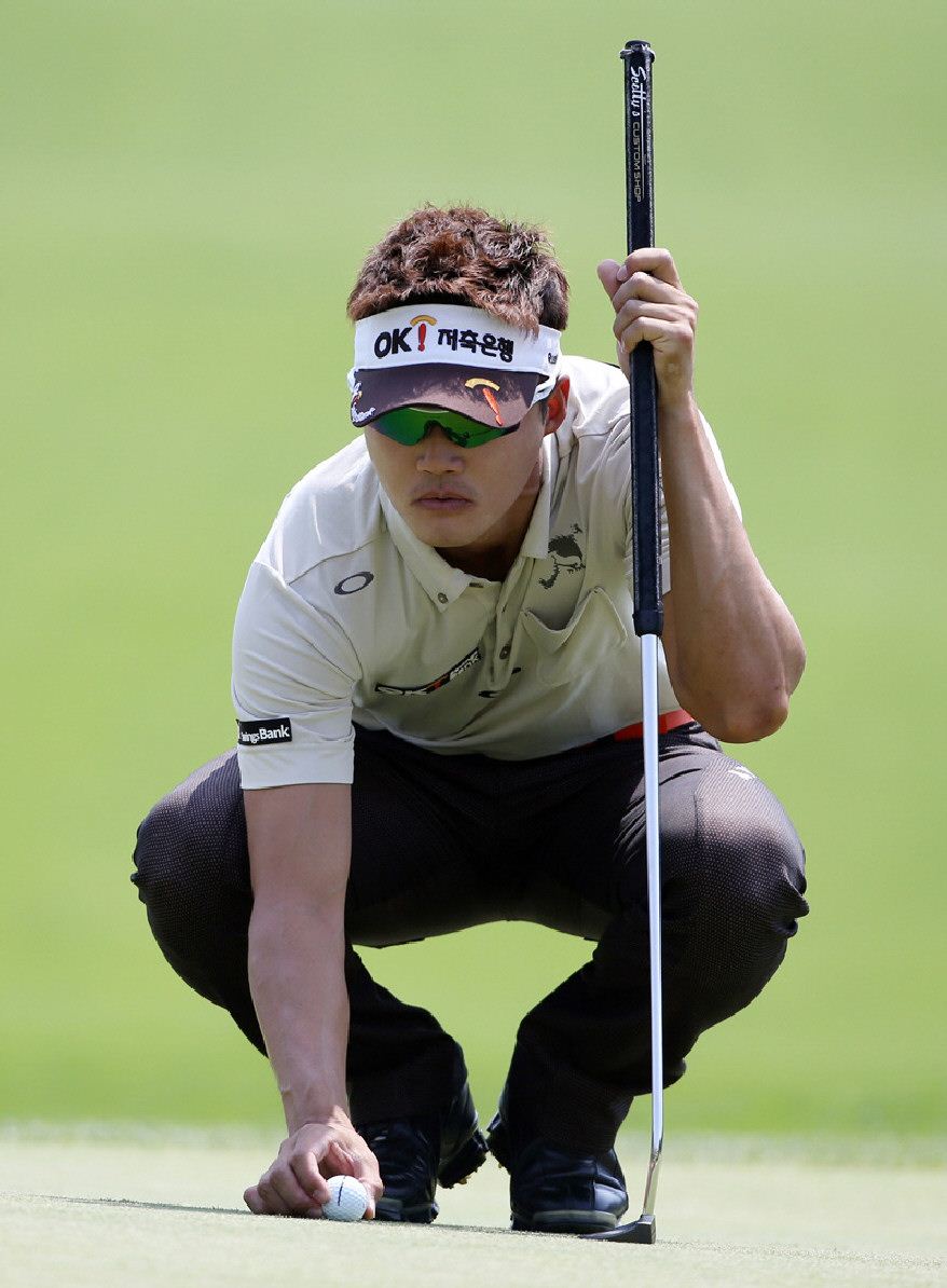 이태희가 넵스헤리티지 최종일 9번홀에서 버디 퍼팅을 하기 위해 퍼팅 라인을 살피고 있다. 사진=KGT 제공