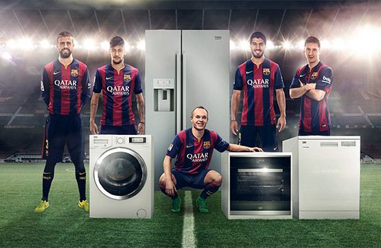 광고에는 메시와 수아레즈, 네이마르, 이니에스타, 피케가 축구장에서 냉장고ㆍ세탁기와 함께 포즈를 취한 사진이 게재됐다. 광고 하단에는 ‘베코’라는 로고가 FC바르셀로나의 문장과 나란히 배치됐다. 베코는 터키 가전회사로 지난해 FC바르셀로나와 스폰서 계약을 했다. 기간은 5년이다. 금액은 공개되지 않았지만 1100억원에 가까운 것으로 알려졌다. 베코 로고는 선수들의 유니폼 소매에 찍혔고 경기장 곳곳에 광고됐다. 과거 FC바르셀로나는 ‘클럽 그 이상의 클럽’ 이라는 모토 아래 상업성을 배제하고 팀을 꾸려갔다. 팀은 누구나 가입 가능한 협동조합을 통해 자체 수입으로 운영됐다. 베코의 광고는 100년 넘은 이런 전통의 단절을 상징한다.베코와 카타르항공 로고가 박힌 FC바르셀로나 유니폼