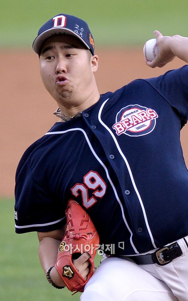 [잠실=아시아경제 김현민 기자] 2015 KBO리그 두산 베어스와 LG 트윈스의 경기가 9일 잠실야구장에서 열렸다. 두산 선발투수 유희관이 역투하고 있다. 김현민 기자 kimhyun81@asiae.co.kr<ⓒ세계를 보는 창 경제를 보는 눈, 아시아경제(www.asiae.co.kr) 무단전재 배포금지>