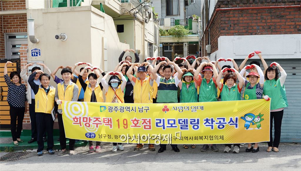 광주 남구는 10일 월산4동에서 최영호 구청장을 비롯한 더불어하우징 장성환 대표, 사랑봉사단, 복지호민관협의체 위원 등 40여 명이 참여한 가운데 주거환경이 취약한 소외계층 세대를 위한 무료 집수리 프로젝트 ‘희망주택 19호점 리모델링 착공식’을 가졌다.