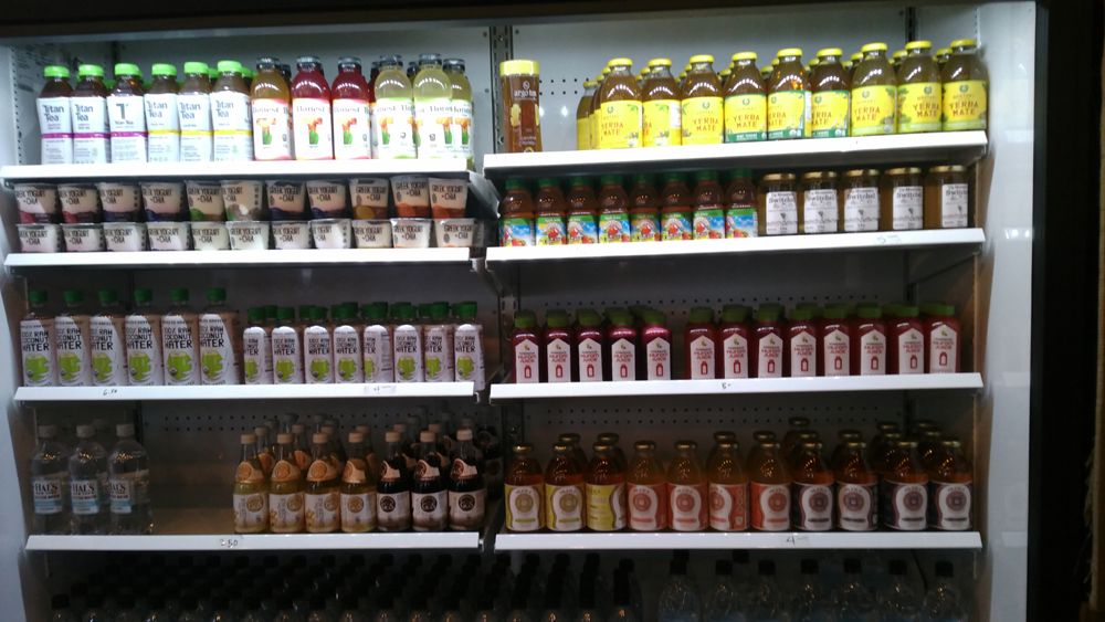 미국 커피드(COFFEED) 매장에 진열된 휴롬주스 모습.