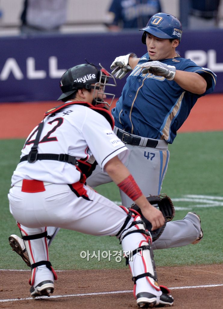 [수원=아시아경제 김현민 기자] 2015 KBO리그 NC 다이노스와 kt 위즈의 경기가 18일 수원야구장에서 열렸다. 1회초 무사 1,3루에서 NC 모창민의 추가 2타점 2루타 때 1루주자 나성범이 홈으로 쇄도해 득점하고 있다.김현민 기자 kimhyun81@asiae.co.kr<ⓒ세계를 보는 창 경제를 보는 눈, 아시아경제(www.asiae.co.kr) 무단전재 배포금지>