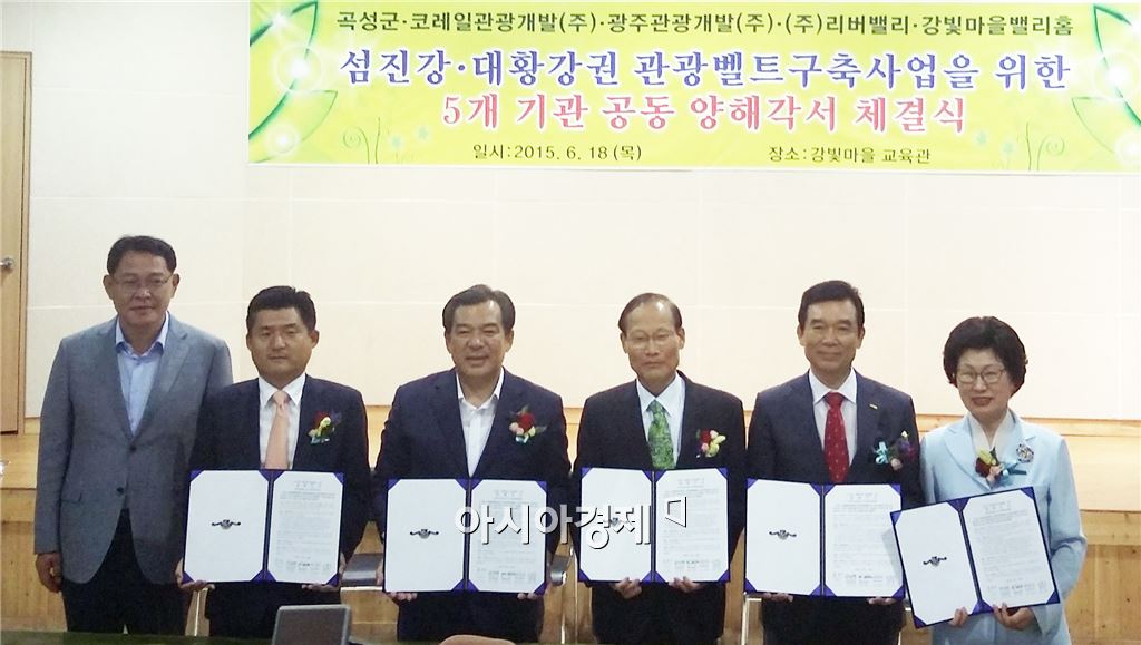 곡성군(군수 유근기)은 지난 18일 죽곡면 강빛마을 밸리홈 교육관에서 곡성군과 코레일관광개발(주), 광주관광개발(주), (주)리버밸리, 강빛마을 밸리홈 간 섬진강·대황강권 관광벨트 인프라 구축을 위한 양해각서를 체결했다.