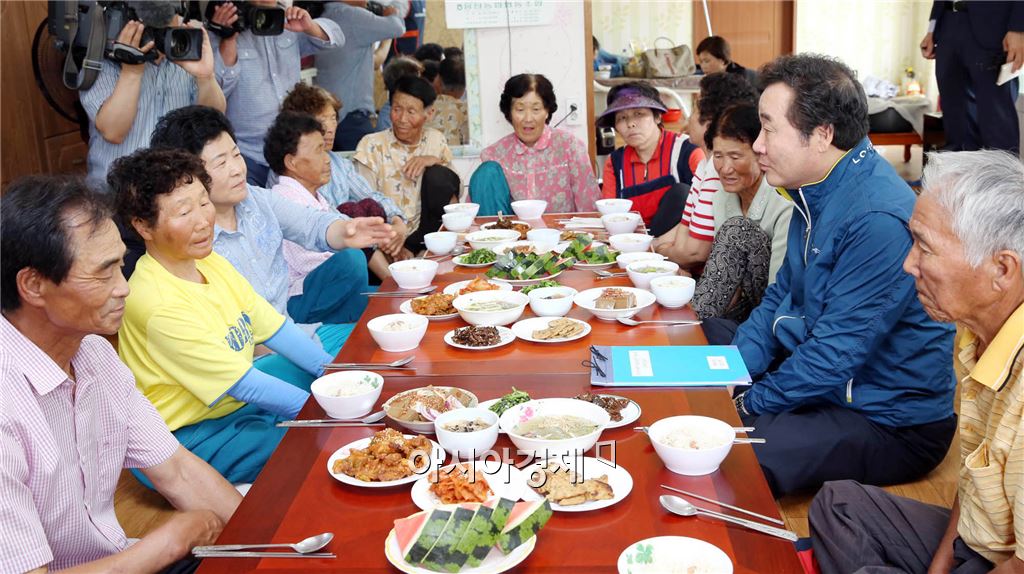 "이낙연 전남지사, 23일 무안 봉산3리 방문해 훈훈한 마을공동체 강화 당부" [아시아경제 노해섭 ]이낙연 전라남도지사는 23일 ‘농번기 마을공동급식’을 시행하는 무안 몽탄면 봉산3리(기룡동마을) 마을회관을 방문, 마을 주민들과 대화를 갖고 공동급식을 통한 훈훈한 마을공동체 강화를 당부했다.이 자리에서 마을 주민들은 “그동안 부녀자들이 논밭에서 똑같이 일 하고도 점심 때 집에 돌아가 밥을 차리는 등 힘든 노동에 집안일까지 하느라 잠시 쉴 틈도 없었는데 마을공동급식으로 이런 문제들이 해결됐다”며 감사의 마음을 전했다.기룡동마을 백창의(53?여) 이장은 “매일 시장을 봐 할아버지, 할머니들을 포함해 25명에게 공동급식을 정성껏 준비하고, 무엇보다 위생관리에 신경을 많이 쓰고 있다”며 “가끔 멀리 떨어진 농장까지 차로 배달할 때도 있지만 힘든 줄 모르고 봉사하는 마음으로 일하고 있다”고 말했다.이에 대해 이 지사는 “바쁜 농번기철에 마을 주민들이 함께 모여 가족과 같은 분위기에서 식사하는 모습을 보니 기쁘다”며 “공동급식이 마을공동체의 훈훈한 미풍양속이 되살아나는 촉매가 되기를 바란다”고 말했다.또한 “도내 전체 농업 인구의 절반 이상을 차지하는 여성들의 일손을 덜어드리기 위해 이 사업을 시작했다”며 “최근에는 농촌마을에 노인들의 고독사가 많이 발생하는데, 공동급식사업이 마을 공동체 및 주민 간 유대 강화에 도움이 돼 노인 고독사 방지에도 일조했으면 한다”고 덧붙였다.이낙연 도지사가 23일 농번기철 마을공동급식을 하고 있는 무안군 몽탄면 봉산3리(기룡마을)를 방문, 주민들과 점식식사를 하며 이야기를 나누고 있다. 사진제공=전남도