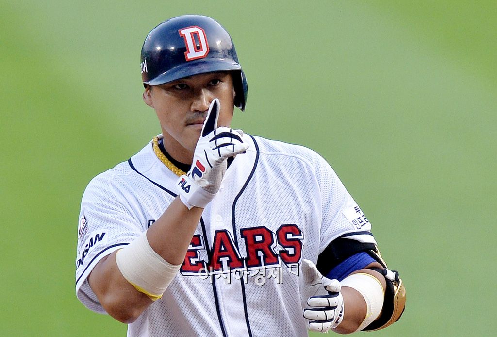 [잠실=아시아경제 김현민 기자] 2015 KBO리그 SK 와이번스와 두산 베어스의 경기가 23일 잠실야구장에서 열렸다. 2회말 무사 2루에서 두산 홍성흔이 선취 1타점 적시타를 치고 세리머니하고 있다. 김현민 기자 kimhyun81@asiae.co.kr<ⓒ세계를 보는 창 경제를 보는 눈, 아시아경제(www.asiae.co.kr) 무단전재 배포금지>