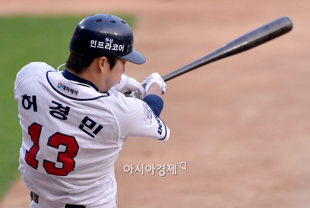 [잠실=아시아경제 김현민 기자] 2015 KBO리그 SK 와이번스와 두산 베어스의 경기가 23일 잠실야구장에서 열렸다. 2회말 무사 2,3루에서 두산 허경민이 추가 2타점 적시타를 치고 있다. 김현민 기자 kimhyun81@asiae.co.kr<ⓒ세계를 보는 창 경제를 보는 눈, 아시아경제(www.asiae.co.kr) 무단전재 배포금지>