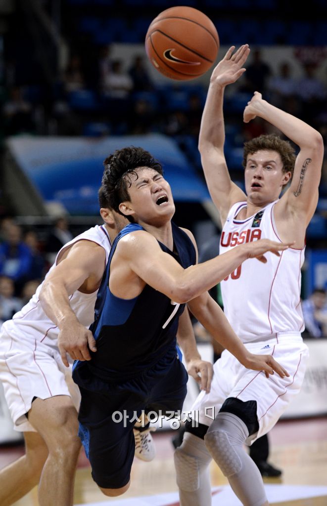 [잠실=아시아경제 김현민 기자] 남자 농구 유니버시아드대표팀이 러시아와 2015 아사아-퍼시픽 대학농구 챌린지 우승을 놓고 30일 서울 잠실학생체육관에서 맞붙었다. 대표팀 이동엽이 상대의 거친 파울에 공을 놓치고 있다. 김현민 기자 kimhyun81@asiae.co.kr<ⓒ세계를 보는 창 경제를 보는 눈, 아시아경제(www.asiae.co.kr) 무단전재 배포금지>
