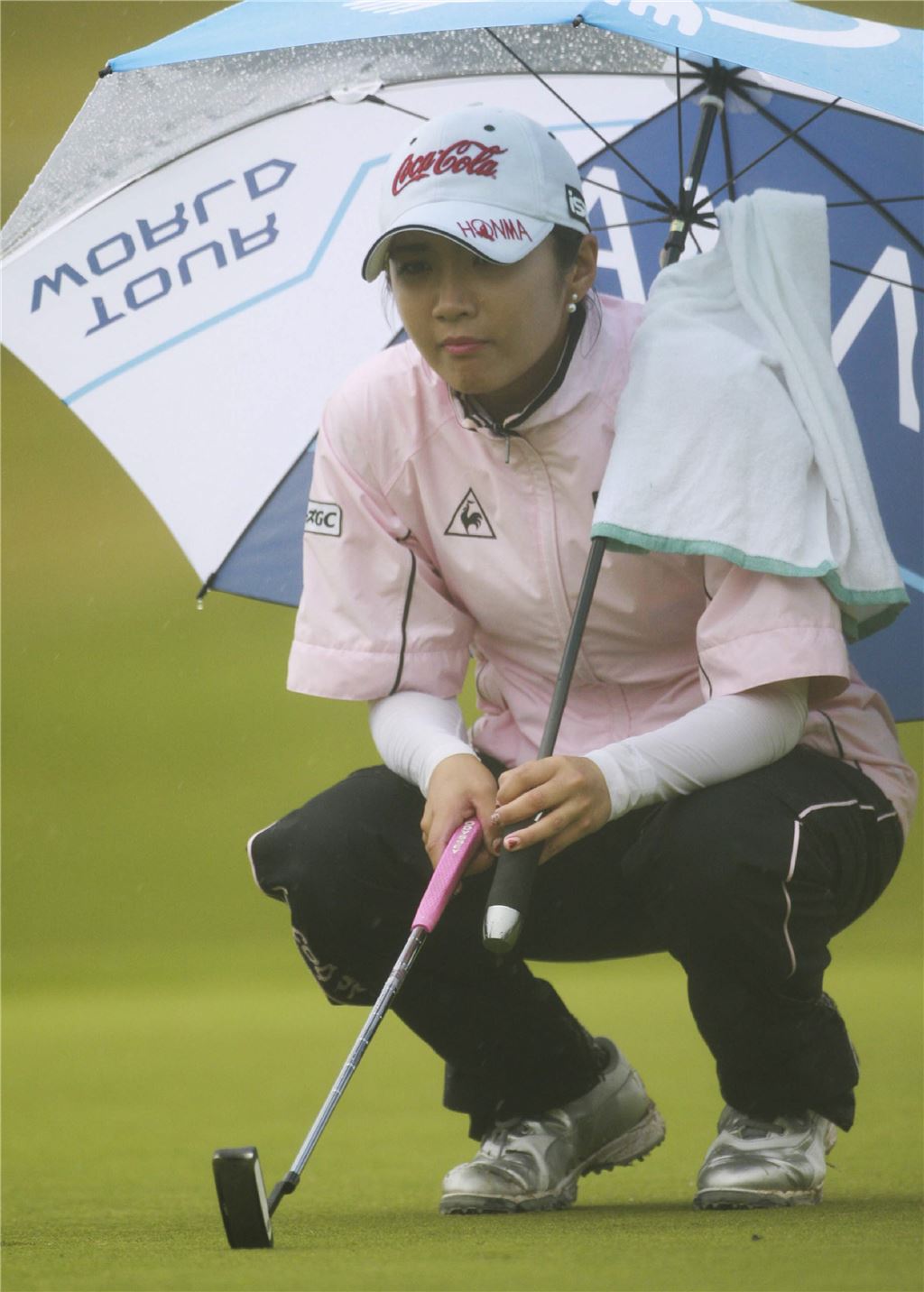 하의만 비옷을 입고, 우산을 최대한 활용한다. 일단 스윙이 편하다. 우산 안에 타월을 걸어놓으면 스윙이 끝나고 곧바로 물기를 제거할 수 있다. 일본의 '상금퀸' 이보미의 우중라운드 장면이다.