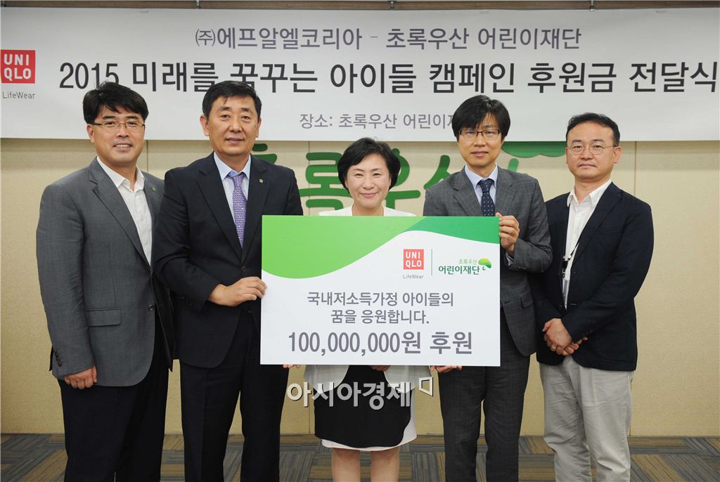 [아시아경제 김현정 기자] SPA 브랜드 유니클로(UNIQLO)는 아동복지전문기관 ‘초록우산어린이재단’에 1억원을 기부한다고 1일 밝혔다. 이번 기부금은 지난 5월 진행된 ‘유니클로 감사제’ 수익금 중 일부로, 유니클로는 올해로 3회째 ‘초록우산어린이재단’이 운영하는 ‘미래를 꿈꾸는 아이들’ 캠페인을 후원하고 있다. 유니클로는 지난 2013년 6월 ‘초록우산어린이재단’과 업무협약을 체결하고 ‘미래를 꿈꾸는 아이들’ 캠페인에 후원금을 전달하고 있다. 해당 캠페인은 재능이 있으나 경제적인 사정으로 전문적인 교육을 받지 못하는 어린이들을 지속적으로 후원하기 위한 유니클로와 재단의 장기 프로젝트로, 유니클로는 2013년 가을부터 특정 상품 판매 및 ‘유니클로 감사제’ 수익금 일부를 기부해 왔다.홍성호 에프알엘코리아 유니클로 대표는 "앞으로도 유니클로는 저소득층 어린이들에게 금전적 후원뿐만 아니라 다채로운 활동을 경험할 기회를 제공하여 아동복지 발전에 적극적으로 기여하겠다"김현정 기자 alphag@asiae.co.kr<ⓒ세계를 보는 창 경제를 보는 눈, 아시아경제(www.asiae.co.kr) 무단전재 배포금지>