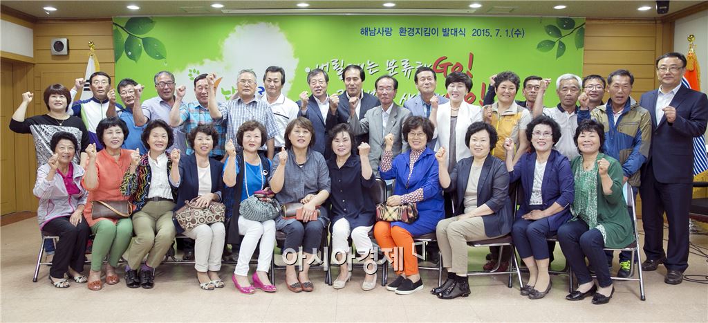 [아시아경제 노해섭 ]깨끗한 해남 생활환경을 위해 해남사랑 환경지킴이 1.027명이 나선다.해남군(군수 박철환)은 지난 1일 하절기 생활폐기물의 올바른 배출문화 정착을 위한 해남사랑 환경지킴이 발대식을 개최했다.해남사랑 환경지킴이는 읍? 면의 각 마을 남녀 새마을 지도자를 대상으로 마을 환경보호와 쓰레기 종량제 추진에 솔선수범하며 쓰레기 불법투기나 소각행위에 대하여 감시하는 등 환경지킴이 역할을 하도록 올해 처음 만들어진 명예 위촉직이다.해남사랑 환경지킴이는 총 1,027명, 임기는 2년으로 각 마을 남·여 새마을 지도자로 구성되어 있으며, 쓰레기 올바른 배출요령 지도, 무단투기 감시 등 깨끗하고 쾌적한 생활환경 조성에 이바지 하게 된다.이날 발대식에는 메르스와 농번기임을 감안하여 환경지킴이 읍면 남녀대표와 읍면 업무담당자가 참석하여 위촉장을 수여하고 실천다짐 결의문을 낭독하며 환경지킴이의 실천의지를 다졌다.박철환 군수는 “쓰레기 및 환경보호 문제에 대하여 군에서도 다각적 방법을 통하여 개선해 나가고 있으나 아직 부족한 점이 많다”며 “쓰레기 종량제 생활화와 무단투기 근절, 쓰레기는 자원이라는 의식전환에 여러분들이 솔선수범하여 앞장서 달라” 고 당부의 말을 전했다.노해섭 기자 nogary@<ⓒ세계를 보는 창 경제를 보는 눈, 아시아경제(www.asiae.co.kr) 무단전재 배포금지>