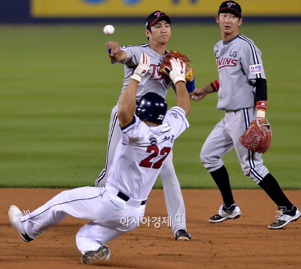 [잠실=아시아경제 김현민 기자] 2015 KBO리그 LG 트윈스와 두산 베어스의 경기가 2일 잠실야구장에서 열렸다. 6회말 1사 1,2루에서 LG 유격수 오지환이 두산 최주환의 2루수 병살타 때 1루주자 홍성흔을 포스아웃 시키고 1루로 송구하고 있다. 김현민 기자 kimhyun81@asiae.co.kr<ⓒ세계를 보는 창 경제를 보는 눈, 아시아경제(www.asiae.co.kr) 무단전재 배포금지>