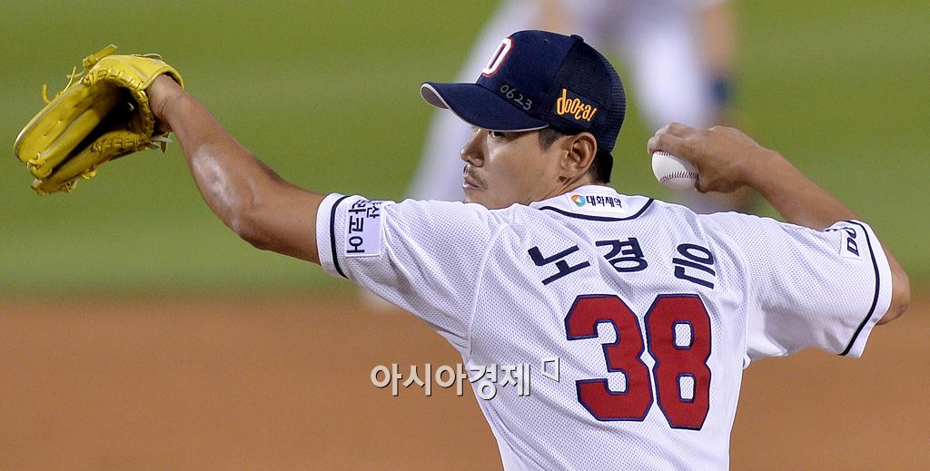 [잠실=아시아경제 김현민 기자] 2015 KBO리그 LG 트윈스와 두산 베어스의 경기가 2일 잠실야구장에서 열렸다. 7회초 두산 선발 진야곱에 이어 마운드에 오른 노경은이 역투하고 있다. 김현민 기자 kimhyun81@asiae.co.kr<ⓒ세계를 보는 창 경제를 보는 눈, 아시아경제(www.asiae.co.kr) 무단전재 배포금지>