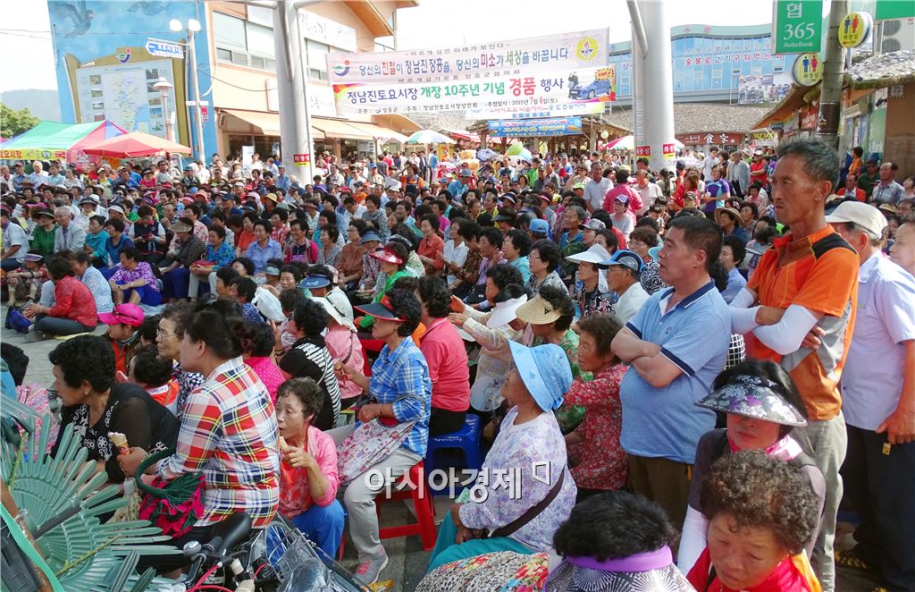장흥군(군수 김성)은 4일 정남진 장흥 토요시장 개장 10주년을 맞아 다채로운 문화이벤트를 김성 장흥군수, 황주홍 국회의원, 곽태수 장흥군 의회 의장, 이낙연 전남도지사 부인 김숙희 여사,김영환 광주·전남지방중소기업청장, 권오광 정남진 장흥 토요시장 상인회회장,군민, 관광객 등 1만여명이 참석한 가운데 개최했다. 이날 토요시장은 관광객들로 하루종일 붐볐다.