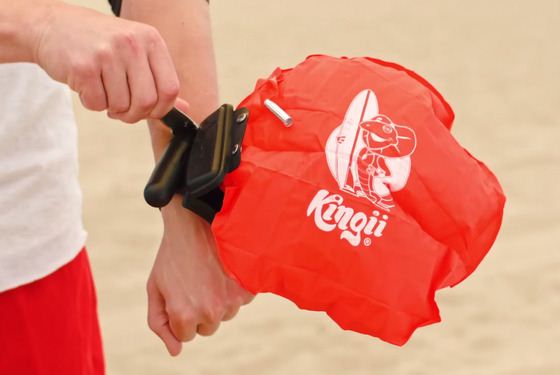 이 주머니는 약 125㎏까지 들어 올릴 수 있어 어린이는 물론 성인도 대부분 사용 가능하다. 카트리지를 교환해 계속 사용할 수 있다. 수면에 떠오른 오렌지색 주머니는 구조대원에 보내는 일종의 신호로 작용할 수도 있다.구명조끼보다 간편한 이 혁신적인 제품은 오는 9월게 출시될 예정이다. 킨지(Kingii)라는 이름은 위험을 느끼거나 상대방을 위협할 때 오렌지색 목주름을 크게 펄치는 목도리도마뱀(학명 Chlamydosaurus kingii)의 이름을 따왔다.미국 캘리포니아의 한 보험대리인에 의해 개발된 이 에어백은 현재 크라우드펀딩 사이트 인디고고(Indiegogo)에서 투자를 받고 있다. 투자자는 79달러를 내면 제품 1개와 카트리지 2개를 받을 수 있다. 펀딩 목표액 6만5000달러의 6배가 넘는 43만달러가 유치됐다.<center>