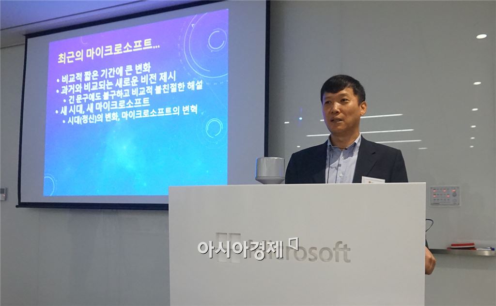 김명호 한국 마이크로소프트 NTO가 7일 '마이크로 소프트의 비전과 변화'에 대해 설명하고 있다.
