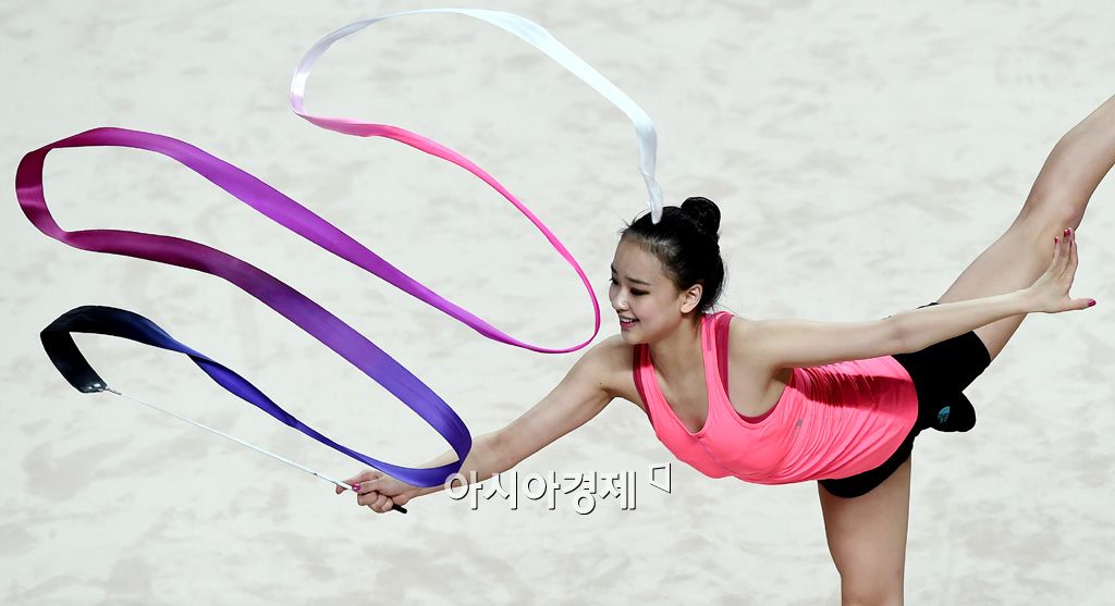 [광주=아시아경제 김현민 기자] '체조 요정' 손연재가 2015 광주하계유니버시아드 출전을 하루 앞둔10일 광주여대 유니버시아드체육관에서 훈련을 하고 있다.김현민 기자 kimhyun81@asiae.co.kr<ⓒ세계를 보는 창 경제를 보는 눈, 아시아경제(www.asiae.co.kr) 무단전재 배포금지>