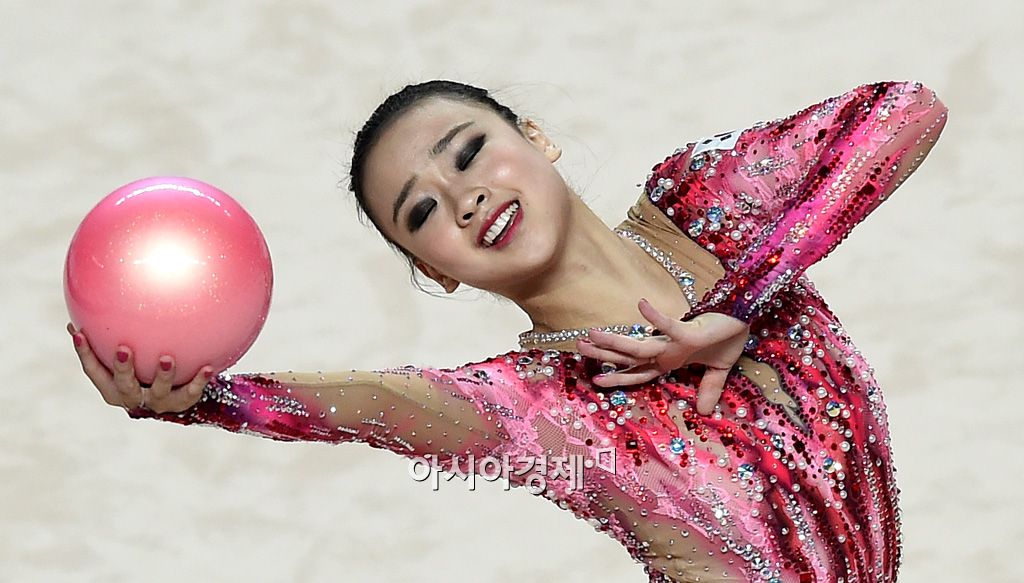 [광주=아시아경제 김현민 기자] '체조 요정' 손연재가 11일 광주여대 유니버시아드체육관에서 열린 2015 광주하계유니버시아드 리듬체조 개인종합 예선에서 볼 연기를 하고 있다.김현민 기자 kimhyun81@asiae.co.kr<ⓒ세계를 보는 창 경제를 보는 눈, 아시아경제(www.asiae.co.kr) 무단전재 배포금지>