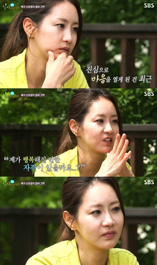 [아시아경제 온라인이슈팀] 배우 신은경이 열애 사실을 고백했다.신은경은 12일 오전 방송된 SBS '잘 먹고 잘 사는 법, 식사하셨어요'에 출연했다.이날 방송에서 신은경은 최근 마음을 터놓고 의지할 사람을 만나 핑크빛 만남을 이어 가고 있다고 밝혔다. 신은경은 “만난 지 오래 되진 않았다. 마음을 연 건 최근이다. 김씨 성의 일반인이고, 나이 차이는 잘 어울리는 정도”라고 남자친구를 소개했다.이어 신은경은 마냥 행복해할 수는 없다고 말했다. 열애설 공개 후 사람들의 반응에 두려움을 느낀 것. 신은경은 “제가 사랑을 받아도 될까요?”라고 말하며 조심스러워 했다. 이에 이영자와 임지호는 “이제는 아무 걱정하지 말고 행복하면 된다”고 전하며 앞날을 축복해줬다. 특히 이영자는 “젊었을 때 왜 사랑을 안 했는지 후회된다. 정말 바보같이 왜 날 스스로 가둬놨는지 모르겠다. 연애 좀 많이 해볼걸”이라고 아쉬움을 드러내 눈길을 끌었다.온라인이슈팀 issue@asiae.co.kr<ⓒ세계를 보는 창 경제를 보는 눈, 아시아경제(www.asiae.co.kr) 무단전재 배포금지>
