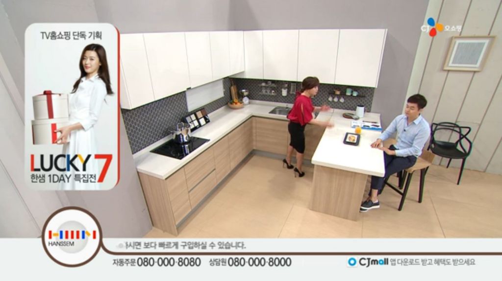 지난5일 방송된 ‘럭키7 한샘 원데이 특집’전 한샘스타일키친 방송장면.