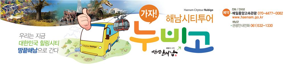 [아시아경제 노해섭 ]땅끝해남시티투어 ‘누비고’가 오는 7월18일부터 운행된다.해남군(군수 박철환)은 KTX 호남고속철 개통으로 증가하는 관광객을 유치하고 대중교통을 이용하여 해남을 방문하는 개인 여행객의 불편함을 해소하고자 땅끝해남시티투어 ‘누비고’를 운행한다.오전 9시부터 18시까지 운행하는 땅끝해남시티투어 ‘누비고’는 나주역 승강장과 해남터미널 승강장 2개소에서 탑승이 가능하며, 코스는 두륜산케이블카와 천년고찰 대흥사, 고산윤선도유적지, 땅끝관광지를 경유하는 1코스와 고산윤선도유적지, 우항리공룡화석지, 우수영관광지를 경유하는 2코스를 격주로 순회한다.이용요금은 나주역에서 탑승할 경우 성인 8,000원, 중·고생 5,000원, 어린이 3,000원, 해남터미널에서 탑승할 경우에는 성인 5,000원, 중·고생 3,000원, 어린이 2,000원으로, 관광지 요금과 중식비, 여행자보험은 참가자 본인이 부담해야 한다. 관광객의 부담 경감을 위해 해남군에서는 관광지 별로 일정의 할인요금을 적용하여 즐거운 여행이 될 수 있도록 도울 예정이다.땅끝해남시티투어 참가를 원하는 사람은 예약전화(매일흥양관광 070-4477-0082)로 하면 되고 문의사항은 해남군청 관광안내전화 061-532-1330으로 하면 된다. 온라인 예약은 해남군 누리집(홈페이지)을 통해 할 수 있다. 군 관계자는 “땅끝해남시티투어는 그동안 쉽게 해남을 방문할 수 없었던 여행객이 보다 저렴한 비용으로 해남 주요관광지를 여행하는 좋은 기회가 될 것”이라며 “힐링시티 해남의 아름다움을 시티투어를 통해 만끽하시길 바란다”고 전했다.노해섭 기자 nogary@<ⓒ세계를 보는 창 경제를 보는 눈, 아시아경제(www.asiae.co.kr) 무단전재 배포금지>