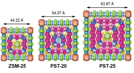 ▲ZSM-25, PST-20, PST-25 제올라이트 구조.[사진제공=미래부]