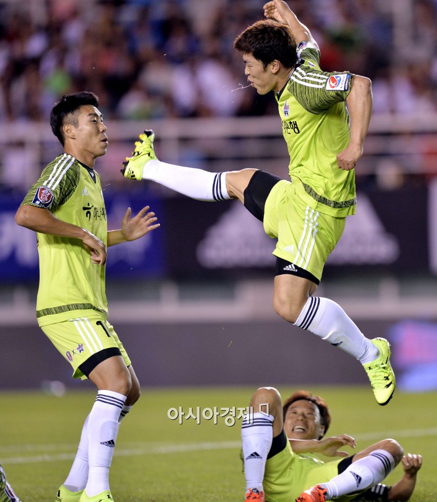 [안산=아시아경제 김현민 기자] 슈틸리케 감독과 최강희 감독의 사령탑 맞대결로 관심을 이끈 2015 K리그 올스타전이 17일 안산 와스타디움에서 열렸다. 팀 슈틸리케 이종호가 3-3 동점골을 넣고 세리머니를 하고 있다. 김현민 기자 kimhyun81@asiae.co.kr<ⓒ세계를 보는 창 경제를 보는 눈, 아시아경제(www.asiae.co.kr) 무단전재 배포금지>