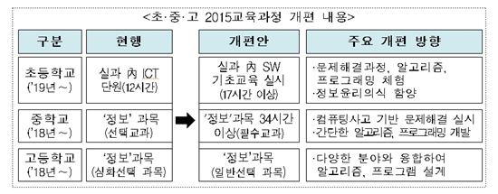 ▲초중고 2015년 교육 과정 개편내용(자료:미래부)