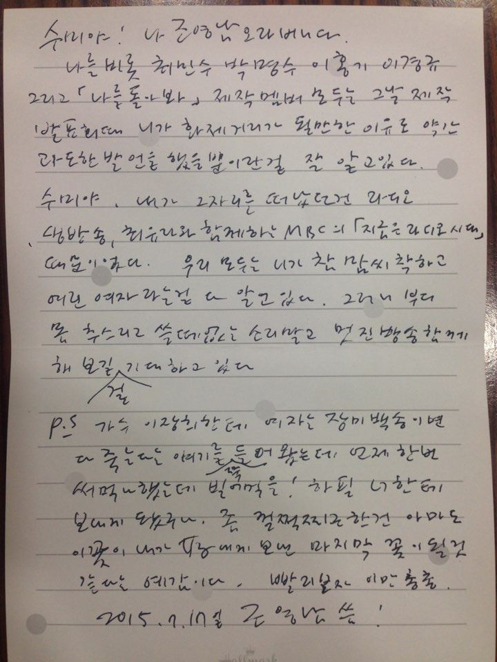 가수 조영남이 김수미에게 보낸 손편지. 사진=코엔미디어 제공