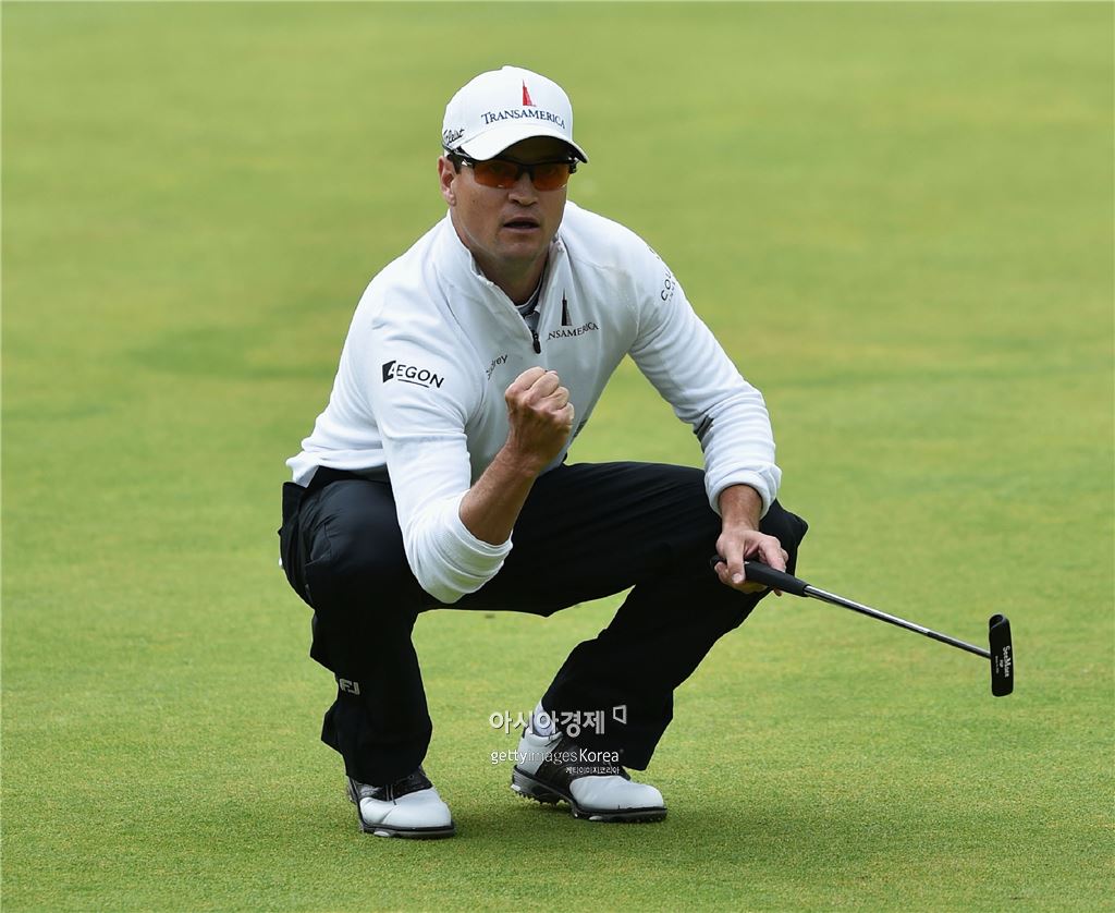 잭 존슨이 144번째 디오픈 최종 4라운드 18번홀에서 버디를 잡아낸 뒤 환호하고 있다. 스코틀랜드=Getty images/멀티비츠 <br />