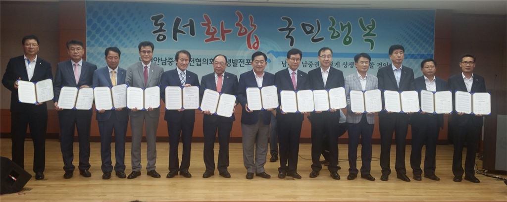 영·호남 9개 시·군과 상공회의소, 예술단체 등 지역대표들이 모여 정부의 지지부진한 ‘남해안 남중권 발전을 위한 정책’의 적극 추진을 촉구했다.23일 오후 순천대 70주년 기념관에서 이정현 국회의원과 조충훈 순천시장, 송도근 사천시장, 송영무 순천대 총장, 권순기 경상대 총장, 하계백 진주상공회의소 회장, 김종욱 순천상공회의소 회장, 정기현 사천상공회의소 회장을 비롯한 경남 서부지역과 전남 동부지역 지자체 관계자, 주민 등이 참석한 가운데 남해안남중권발전협의회 주최로 ‘동서화합, 국민행복’을 위한 ‘남해안남중권 상생발전포럼’이 열렸다.남해안남중권발전협의회 회장인 조충훈 순천시장은 개회사에서 “남중권은 지역갈등을 타파하고 국민대통합을 실현하는 동서화합의 상징이자 우리나라의 밝은 미래를 여는 열쇠”라고 전제한 뒤 “정부의 핵심공약인 ‘동서화합지대 조성사업’이 현재까지 계획이나, 실질적인 예산 지원이 전혀 이뤄지지 않고 있다”고 지적했다.이정현 의원은 축사에서 “국토 균형발전과 동서화합은 더 이상 늦출 수 없는 국가발전의 선결 과제”라며 “정부에서도 국정과제의 하나로 동서화합지대 조성이 관심이 높아지고 있어 올해는 더욱더 구체적인 상생발전을 위한 청사진이 나올 수 있도록 호합을 다지는 계기가 필요하다”고 강조했다.9개 지자체 대표들은 공동선언문을 채택했다. 이들은 공동선언문에서 “대통령 핵심공약인 ‘동서통합지대 조성사업’이 계획이나 예산 지원이 전혀 이뤄지지 않아 지역민들의 실망과 우려가 크다”면서 “실질적인 예산 지원 등 행·재정적으로 책임 있는 노력 요구와 2016년 정부 재정계획에 ‘동서통합지대’사업의 핵심인 10대 선도사업 예산을 적극 반영해 줄 것, 9개 시·군이 공동 추진키로 합의한 3대 연계·협력 프로젝트를 국가사업으로 확정해 집중 육성해줄 것”을 140만 지역민의 뜻을 모아 건의했다.김영 경상대 교수는 ‘남해안 남중권 어떻게 상생발전할 것인가?’라는 주제로 기조발제에 나섰다. 김 교수는 “수도권, 대도시권 집중에 대응한 강력한 신성장축이 필요하고 지역자원의 최대한 활용과 부가가치 확대로 외부지원의 한게를 극복해야 한다”고 제시했다.이어 오성익 지역발전위원회 생활권총괄과장은 ‘박근혜 정부의 지역발전정책’을 통해 각 지자체간 공동으로 추진하는 생활권 선도사업을 비롯해 창조지역사업, 취약지역개선사업 등 추진 중인 정책에 대해 설명했다.김선명 순천대 교수는 ‘남해안남중권발전협의회 효율적 운영방안’을 발표했고, 주제발표에서는 마상열 경남발전연구원 연구원과 오병기·장덕기 전남발전연구원 연구원이 ‘남중권 문화융성 프로젝트’, ‘중소 조선산업 육성방안’, ‘향토산업 브랜드화 방안’등에 대해 각각 발표했다.최경필 기자<ⓒ세계를 보는 창 경제를 보는 눈, 아시아경제(www.asiae.co.kr) 무단전재 배포금지>