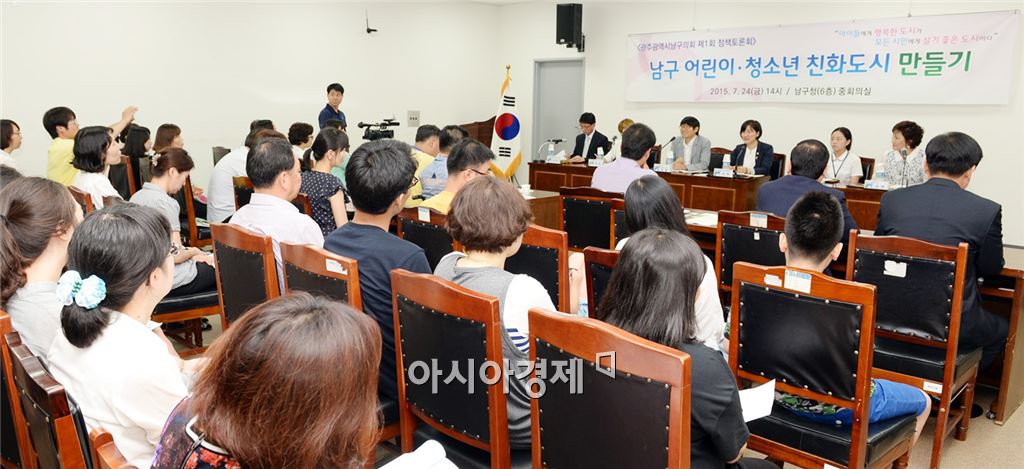 광주시 남구의회(의장 김점기)는 24일 오후 남구청 중회의실에서 의원연구회, 어린이 청소년 관련 유관 기관 및 단체, 마을공동체 관계자 등 60여 명이 참석한 가운데 ‘어린이ㆍ청소년 친화도시’ 조성을 위한 토론회를 개최했다. 사진제공=광주시 남구<br />
