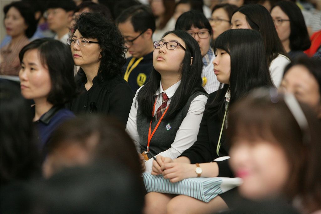 지난 5월14일 열린 대학입시설명회에 참가한 학부모와 학생들이 진지하게 입시특강을 경청하고 있다<br />