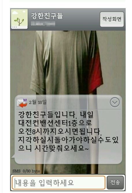 강한친구들 측이 보내온 문자메시지. 사진=온라인커뮤니티 캡처