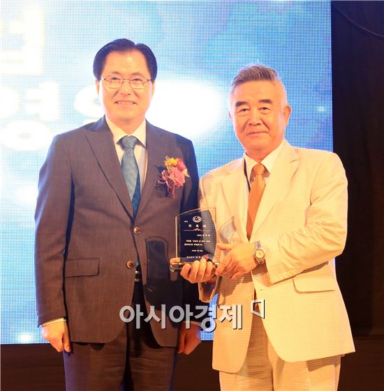 완도군은 국내에서 손꼽히는 드럼 연주가인 김희현(오른쪽)씨를 고향 완도의 홍보대사로 위촉하고 신우철 군수와 기념촬영을 하고있다.