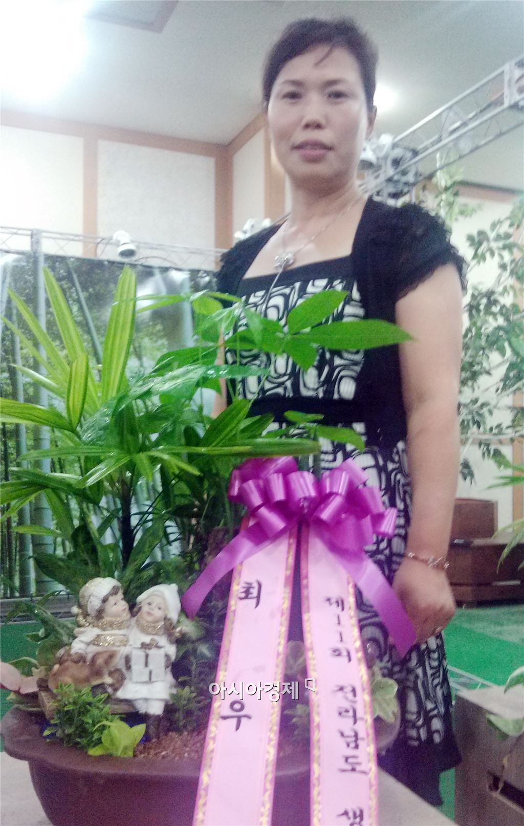 [아시아경제 노해섭 기자]제11회 전라남도 생활원예 경진대회에서 해남군 땅끝다육세상 최미순 대표가 최우수상을 수상했다.지난 7월29일 전라남도농업기술원에서 도시농업 및 생활원예 기술 확산을 위해 개최된 이번 대회는 전남도내 각 시군대표가 출전했다.최 대표는 ‘접시정원 만들기’ 현장경진에서 수상했는데, 작품성과 창의성, 보급성, 실용성, 원예학적 지식 등 소재 선정부터 작품까지 높은 완성도를 보였다는 평가를 받았다. 또한 식물을 다루는 정성과 애정에 대해서도 좋은 평가를 받았다.최 대표는 오는 9월 순천에서 실시하는 제11회 생활원예 중앙경진대회에 전남도 대표로 출전하게 된다.노해섭 기자nogary@ <ⓒ세계를 보는 창 경제를 보는 눈, 아시아경제(www.asiae.co.kr) 무단전재 배포금지>