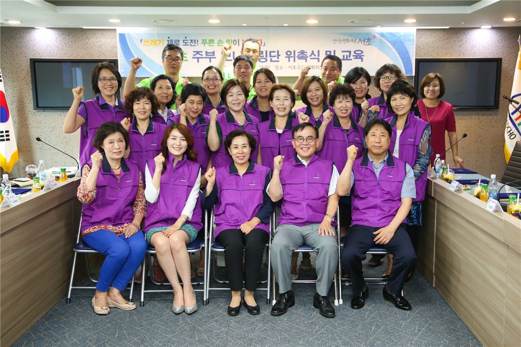 [아시아경제 박종일 기자] 서초구(구청장 조은희)는 30일 쓰레기 제로에 도전하는 서초 주부모니터링단 '푸른손 맘' 위촉식을 개최했다.구는 주부모니터링단을 구성, 수도권 및 강남 매립지의 반입료 인상에 따른 쓰레기 처리비용 증가과 매립지 부족 등으로 인한 쓰레기 처리 문제의 심각성을 주민들이 인식하고 일상생활에서 쓰레기 감량에 적극 참여하도록 유도할 계획이다. 주부모니터링단 일명 '푸른손 맘' 활동은 SNS를 통해 이루어진다. 모니터링단이 쓰레기 감량 운동의 구심점이 돼 SNS를 통해 주부들의 경험과 지혜를 공유하고 지역 쓰레기 감량 문화 확산을 위해 노력할 예정이다. 또 우수 사례 전파, 전문가 자문, 애로사항 등 의견을 청취, 민?관 상시 협업체계를 구축, 지속적인 피드백을 통해 쓰레기 20% 감량에 도전한다.