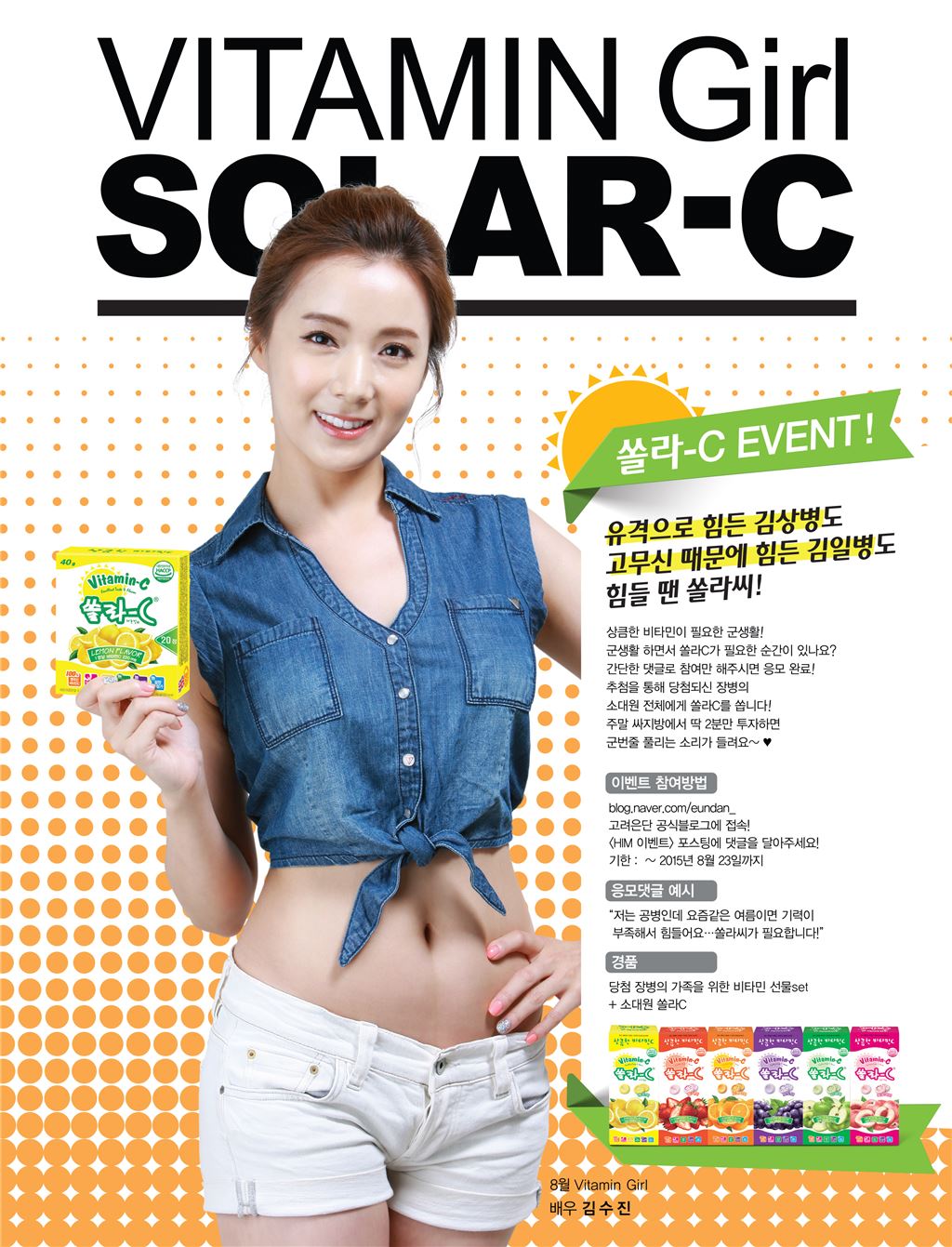 고려은단은 오는 23일까지 군인과 대학생 등 젊은층을 대상으로 씹어먹는 비타민 '쏠라C'를 선물하는 이벤트를 진행한다고 3일 밝혔다. 참여방법은 고려은단 공식 블로그(blog.naver.com/eundan_)에서 'HIM 이벤트' 포스팅란에 ‘쏠라씨가 필요한 이유’를 간단히 댓글로 남기면 된다. 당첨된 장병의 소대원 전체에게 쏠라씨를 선물로 증정한다.이번 이벤트는 쏠라씨 비타민걸로 선정된 배우 공수진이 모델을 맡았다. 쏠라씨는 맛있는 캔디처럼 먹을 수 있어 20여년간 꾸준히 사랑 받고 있는 비타민C 캔디다.최근 대학생 광고공모전을 개최했고, KBS2TV 드라마 ‘오렌지 마말레이드’에서 제품이 노출되는 등 다양한 마케팅을 진행하고 있다. 지연진 기자 gyj@asiae.co.kr<ⓒ세계를 보는 창 경제를 보는 눈, 아시아경제(www.asiae.co.kr) 무단전재 배포금지>
