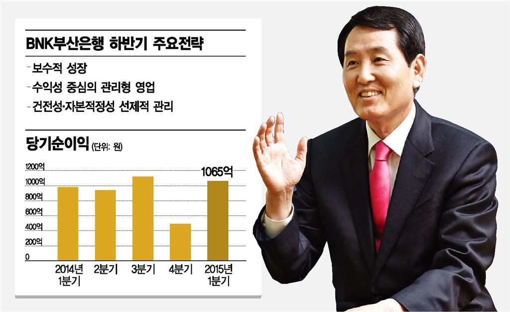 [아시아경제 김대섭 기자] 지난달 24일 BNK부산은행 임원, 부서장, 영업점장 등 300여명 임직원들이 한자리에 모였다. 올 하반기 경영전략을 수립하기 위해서였다. 미국 금리 인상 전망과 내수 시장 침체 가능성 등 다양한 의견이 개진됐다. 성세환 BNK금융그룹 회장 겸 부산은행장은 이 자리서 나온 의견을 바탕으로 수익성과 건전성을 강화하는 성장 전략을 중점으로 한 하반기 경영 전략을 마련했다. 3일 업계에 따르면 BNK부산은행은 올 하반기 경영전략을 '보수적 성장'으로 정하고 수익성 중심의 관리형 영업을 펼칠 방침이다. 경기 변동에 따른 '시나리오 분석'을 통해 선제적으로 건전성과 자본적정성을 관리해 나갈 계획이다. 올 한해 경영 목표는 경영효율화를 통한 내실 다지기였다. 양 보다 질 중심에 초점을 맞췄다. 상반기 양호한 수준의 건전성을 이뤄낸 것을 기반으로 하반기에는 더 힘차게 성장하기 위한 도약대를 만들 계획이다. 1분기 기준으로 총여신은 35조8843억원을 기록해 전년 동기 32조4198억원 대비 3조4645억원 늘어났다. 기업대출과 가계대출 연체율은 전년 동기 대비 각각 0.06%포인트 감소했다. 총수신도 1분기 38조2233억원을 기록해 전년 동기 34조1270억원 대비 4조963억원 증가했다. 부산은행은 계열사들과의 시너지를 극대화하는데 주력하고 있다. 모든 계열사가 선의의 경쟁자이자 상호보완적인 관계로서 서로의 혁신을 자극하는 파트너로 인식하는 것이다. 성세환 회장은 "그룹과 계열사 경영 전반이 유기적이고 효율적으로 관리되는 차별화된 미래지향적 경영체제가 반드시 필요하다"고 설명했다. 계열사인 BNK경남은행과 상호 입출금, 통장 재발행 시스템도 마련했다. 또 통합고객등급제와 은행-증권 복합점포도 개설했다. 국내 영업기반은 안정적으로 이어지고 있다. 1분기 당기순이익 1065억원을 기록해 전년 동기 983억원 대비 82억원 증가하는 성과를 거뒀다. 총자산은 53조5878억원으로 전년 동기 48조1568억원 대비 5조4310억원 증가했다. 성 회장은 "저성장과 저금리의 험난한 파고 속에서도 변화와 도전으로 높은 수준의 경영실적을 시현해 1등 지역은행의 위상을 굳건히 다졌다"며 "아시아 금융의 새로운 미래, 대한민국 부산은행이라는 새로운 비전을 중심으로 전행적인 역량 업그레이드와 경영구조 혁신을 추진해 나갈 것"이라고 말했다. 성 회장은 국내외 영역 확대도 꾀한다. 국내에서는 주요 광역시 중심의 영업망을 구축해 전국에서 활약하는 대형 지방은행으로 도약한다는 포부다. 해외에서는 베트남 호찌민 사무소가 연내에 지점 설립 인허가 승인을 받을 것으로 예상된다. 현재 해외 점포는 중국 칭다오 지점과 베트남 호찌민 사무소 두 곳을 운영하고 있다.김대섭 기자 joas11@asiae.co.kr<ⓒ세계를 보는 창 경제를 보는 눈, 아시아경제(www.asiae.co.kr) 무단전재 배포금지>
