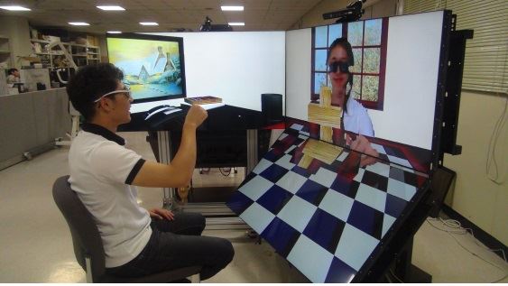 [아시아경제 정종오 기자] 기존의 디스플레이를 이용한 실감나는 가상현실이 펼쳐진다. 서로 멀리 떨어진 곳에 있는 사람들이 하나의 가상공간에서 가상물체를 실제처럼 보고 손으로 직접 조작할 수 있는 기술이 국내 연구팀에 의해 개발됐다.한국과학기술연구원(KIST, 원장 이병권) 로봇연구단 박정민 박사팀은 보편적으로 사용되는 평면 입체 디스플레이 환경에서 입체 가상물체를 실제 물체처럼 보고 맨손으로 조작할 수 있는 기술을 내놓았다. 기존 특수 형태로 제작된 디스플레이 환경에서 가능했던 상호작용을 보급형 평면 입체 디스플레이와 카메라형 센서로 구성된 환경에서 구현한 셈이다. 기술의 접근성을 높였다. 다양한 가상 현실공간 응용에 손쉽게 사용할 수 있기 때문에 기술 활용도가 매우 높을 것으로 기대된다. 가상물체를 실제 물체처럼 직접 손으로 조작(잡기, 들기, 움직이기 등)하는 기술은 훈련과 교육 애플리케이션이나 의료용 시뮬레이터 등 다양한 응용분야에서 직관적 이용자 인터페이스로 활용될 것으로 기대된다. 현실에 있는 이용자가 가상공간의 물체를 현실과 동일한 수준의 몰입감으로 조작하기 위해서는 현실공간과 가상공간을 통합하는 기술이 필요하다. 현실공간과 가상공간을 하나로 통합하는 기술은 이용자가 영상을 보는 평면 입체 디스플레이와 이용자 간의 상호작용을 위해 이용자 움직임을 감지하는 카메라형 센서의 위치를 추정하는 기술이 핵심이다. 연구팀은 거울을 이용해 디스플레이를 비추는 영상을 얻었다. 이어 각각의 센서-디스플레이 쌍에 대해 거울을 이용한 센서변수와 자세를 추정해 현실공간과 가상공간이 일치하는 정합결과를 얻는 기술을 개발했다. 특수한 장치로 고안된 가상공간과 현실공간을 통합하는 예는 기존에 있었는데 특정한 입출력장치로 구성된 시스템에서 제한된 공간에서만 사용할 수 있는 한계가 있었다. 때문에 가정과 산업현장에서 보편적으로 사용하기 어려웠다. 평면 입체 디스플레이와 RGBD 센서인 키넥트(Kinect)를 사용해 색상(color)과 깊이(depth)를 이용하는 이번 기술은 가상공간 구성 비용이 저렴하고 보급형 출력장치인 3D TV와 같은 평면입체디스플레이를 사용하기 때문에 손쉽게 몰입형 가상공간을 구축할 수 있는 장점이 있다. 또 현실처럼 가상공간에서 상호작용이 가능하고 몰입감이 뛰어나 산업용, 일반 이용자용과 다양한 새로운 서비스 창출이 가능할 것으로 예상된다. 박정민 박사는 "이미 보급된 입출력 장치를 사용하기 때문에 다양한 가상현실 관련 산업을 견인하는 기술파급효과가 클 것으로 예측된다"며 "네트워크를 통해 연결함으로써 멀리 떨어진 곳에 있는 사람이 실제처럼 만나서 함께 일하고 재미있게 놀이할 수 있는 새로운 공간이 마련될 것이고 새로운 서비스 창출에 기여할 수 있을 것"이라고 말했다. 정종오 기자 ikokid@asiae.co.kr<ⓒ세계를 보는 창 경제를 보는 눈, 아시아경제(www.asiae.co.kr) 무단전재 배포금지>