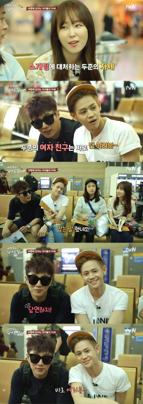 [아시아경제 온라인이슈팀] 소개팅을 시켜주겠다는 서현진의 제안에 윤두준의 대답이 화제다.5일 방송된 tvN '내친구와 식샤를 합시다'에서는 프랑스 파리로 떠난 비스트 윤두준, 양요섭과 배우 서현진, 박희본의 모습이 그려졌다.이날 서현진은 윤두준에 "여자친구를 소개시켜주겠다"고 말하자 윤두준은 "내 여자친구는 팬 여러분"이라고 답했다.그러자 양요섭이 "맞는 말 했다"라며 맞장구를 쳤고 윤두준 역시 "당연하지"라고 답했다.또 양요섭이 가수 윤복희의 노래 '여러분'을 패러디하며 "내가 외로울 때면"이라고 하자, 윤두준이 "누가 날 위로해주지?"라고 받아쳤다. 그리고 동시에 화면을 쳐다보며 "바로 여러분"이라고 말하며 아이돌의 정석적인 대답을 해 웃음을 자아냈다.한편 '내친구와 식샤를 합시다'는 드라마 '식샤를 합시다' 시리즈의 주인공 윤두준과 서현진이 절친들과 함께한 유럽 먹방 여행을 담은 리얼리티다. 매주 수요일 오후 11시에 방송된다.온라인이슈팀 issue@asiae.co.kr<ⓒ세계를 보는 창 경제를 보는 눈, 아시아경제(www.asiae.co.kr) 무단전재 배포금지>